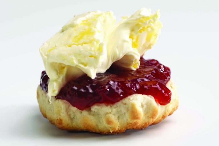We all love clotted cream, and there is the debate about does the cream go on first or does the jam go on first, I think you should just do it the way you like. During the summer months our jam is made in house, and the winter months we use Tiptree, simply because the strawberries are not good enough during those cold months.